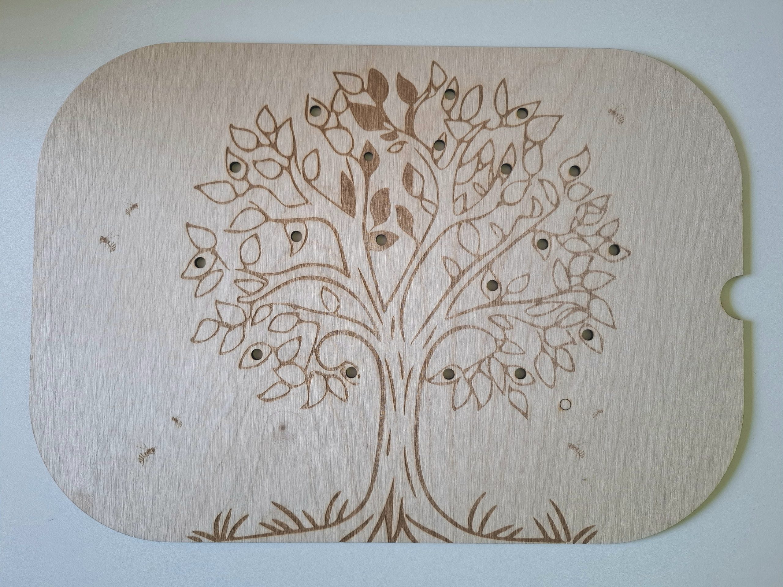 Support représentant un arbre avec des zones prévues pour placer des picots ou fleurs en tissu (branches, feuillage, ou tronc)