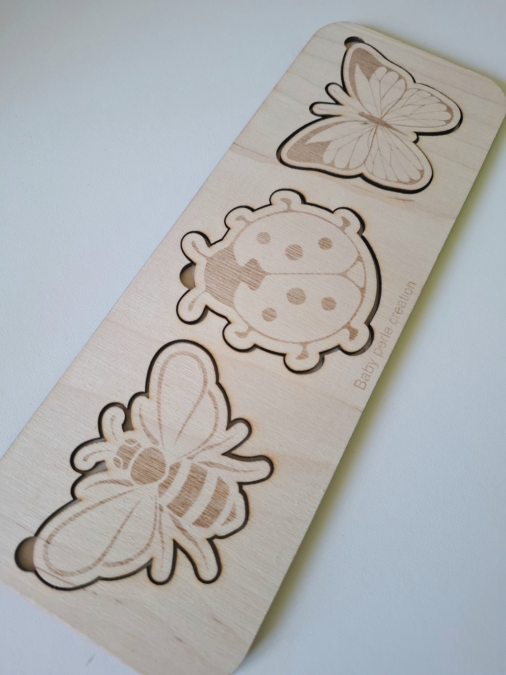 Chaque pièce représente un insecte et doit être remise à sa place correspondante sur le support.