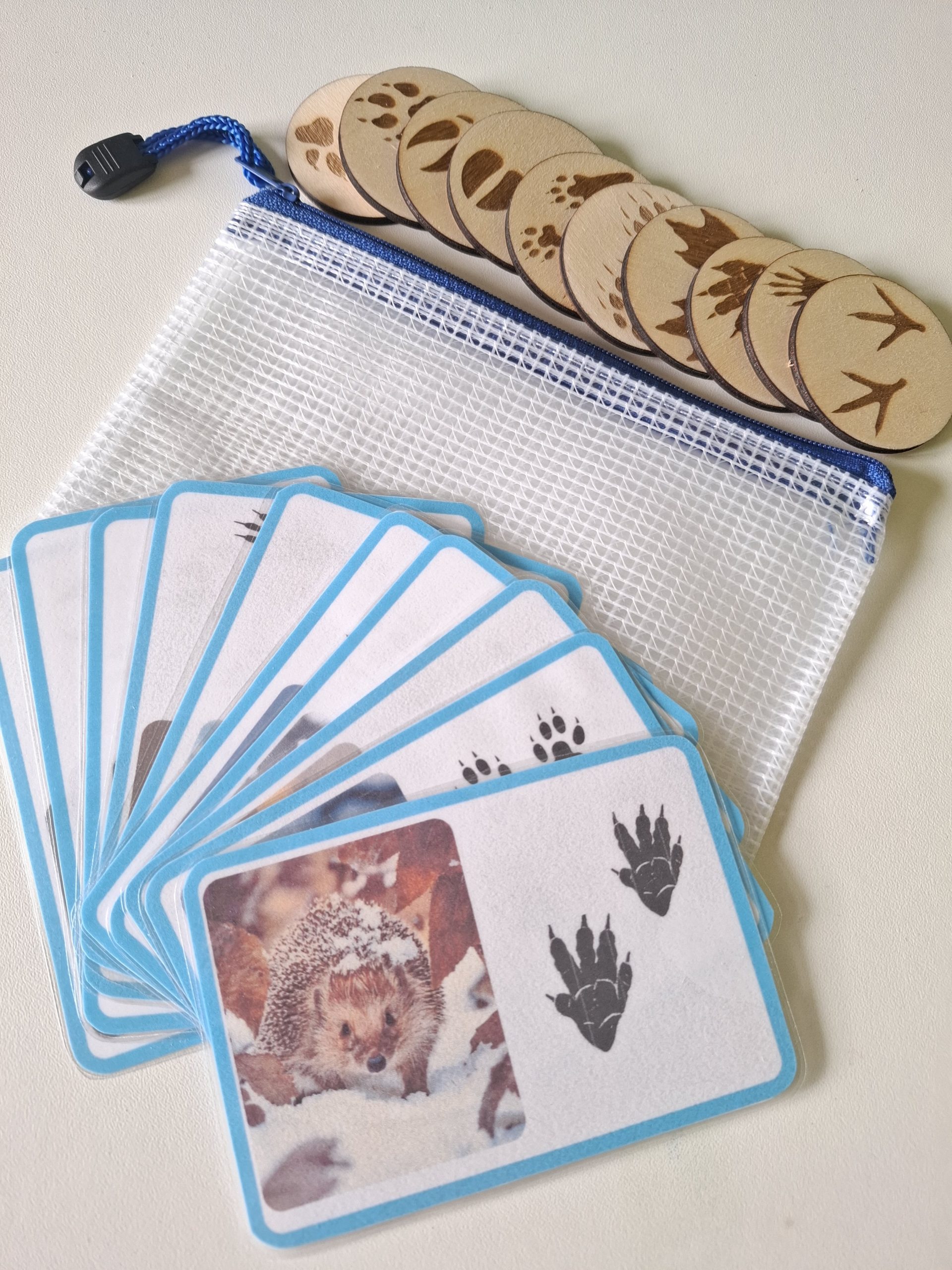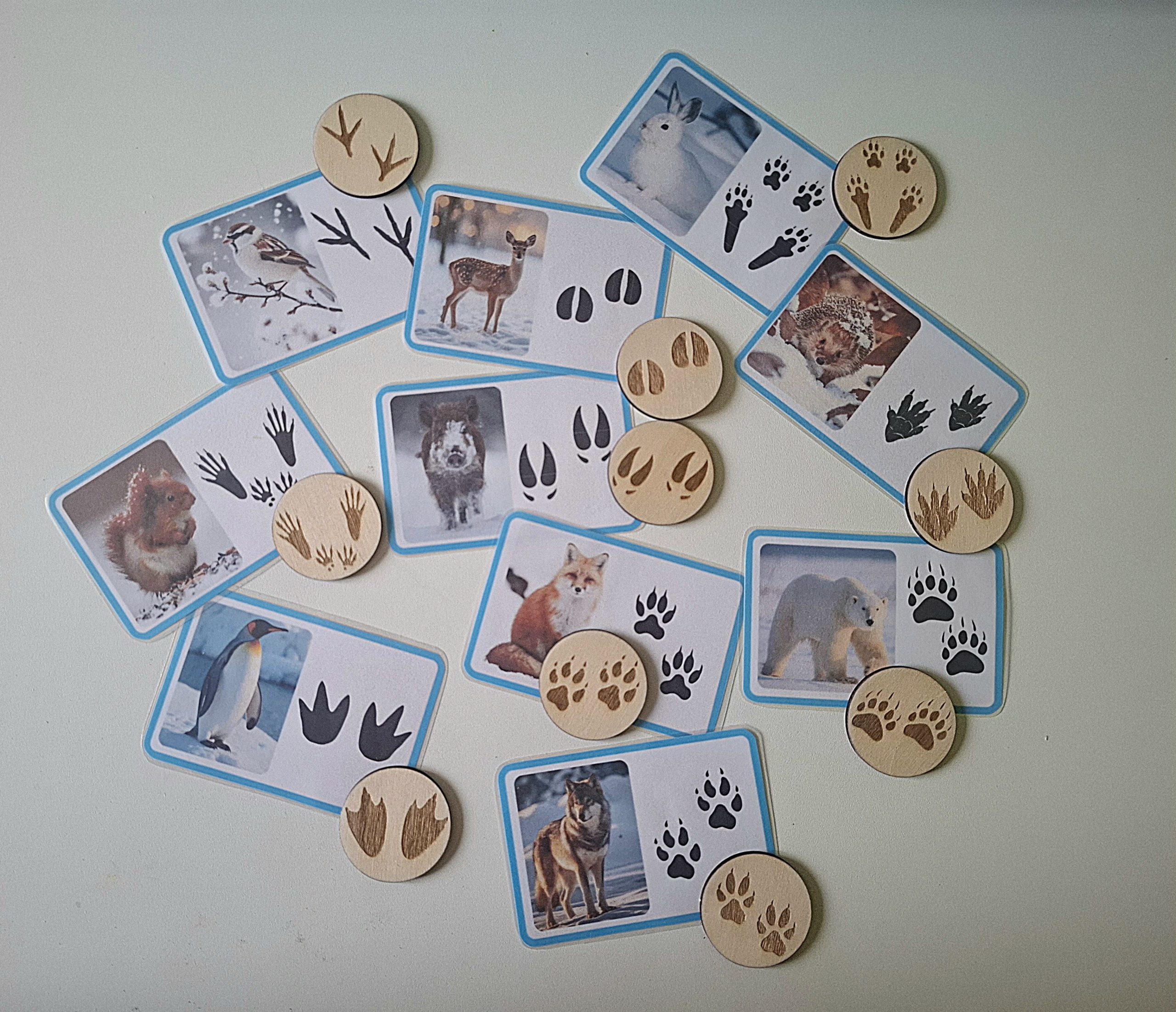 10 jetons représentant les empreintes des animaux de l’hiver