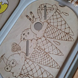 Sur le thème de la gourmandise, l’enfant s’amuse à composer des glaces en insérant des formes géométriques dans les emplacements correspondants. Rond, jetons picots… chaque forme trouve sa place sur la glace ! Une activité amusante qui stimule la logique et la motricité fine.