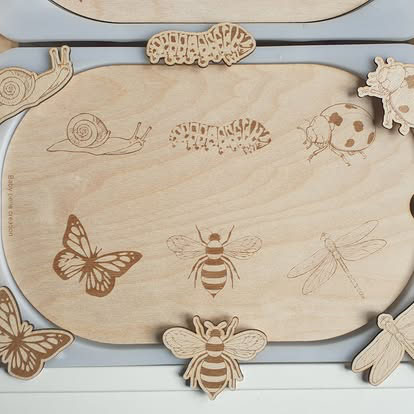 L’enfant apprend à identifier différents insectes par la forme et les couleurs.