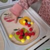 Sur le thème du panier de fruits, l’enfant va s’amuser à placer des jetons, des picots et des boules de coton dans les trous correspondants. Chaque élément trouve sa place selon sa forme, sa couleur ou sa texture. Une belle activité pour développer la motricité fine tout en explorant un univers ludique et coloré !